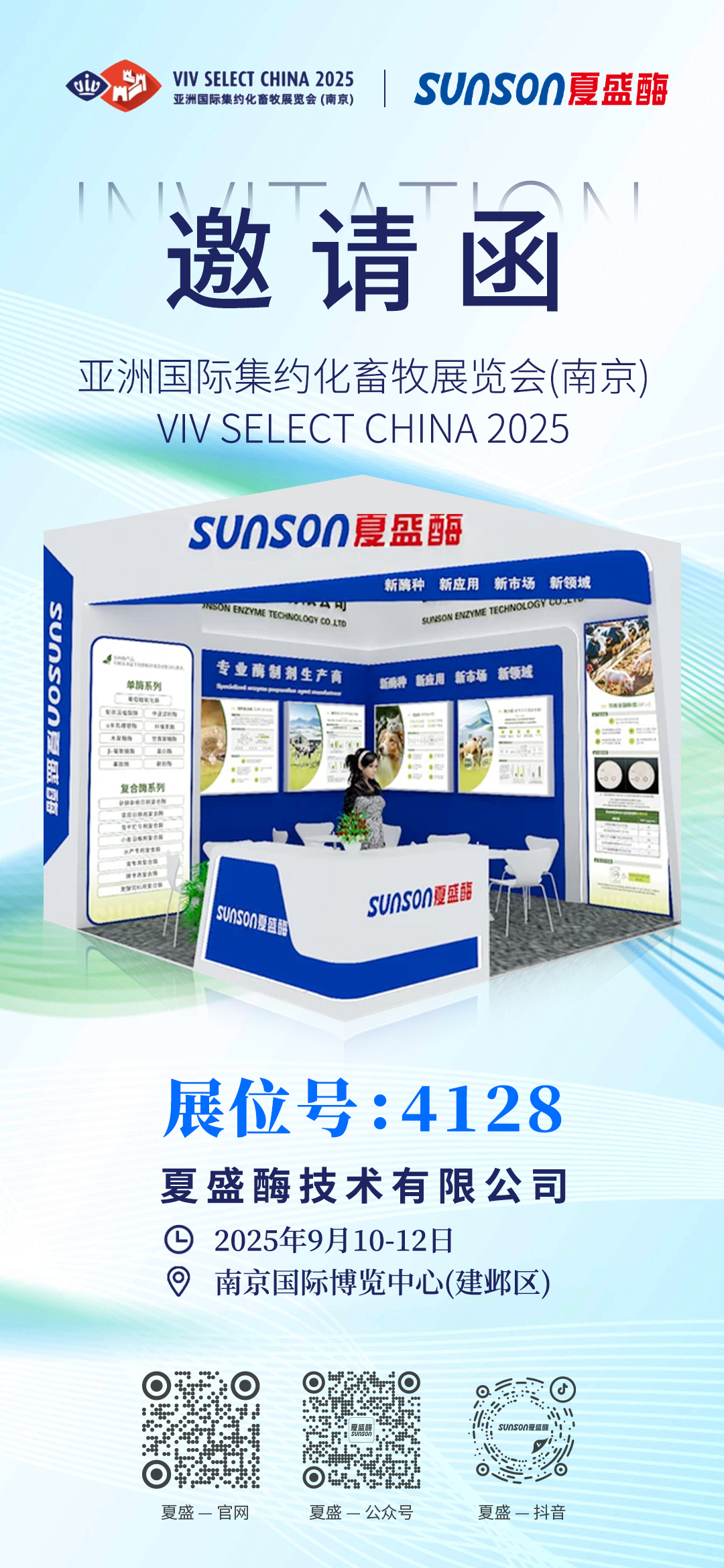 2025年9月10日至12日,亚洲国际集约化畜牧展 VIV SELECT CHINA 2025 在南京国际博览中心成功举办。夏盛酶携溶菌酶、宠物复合酶、豆粕发酵专用酶等新产品亮相展会,与全球畜牧精英齐聚一堂,共探行业前沿趋势,共谋合作发展新机遇。