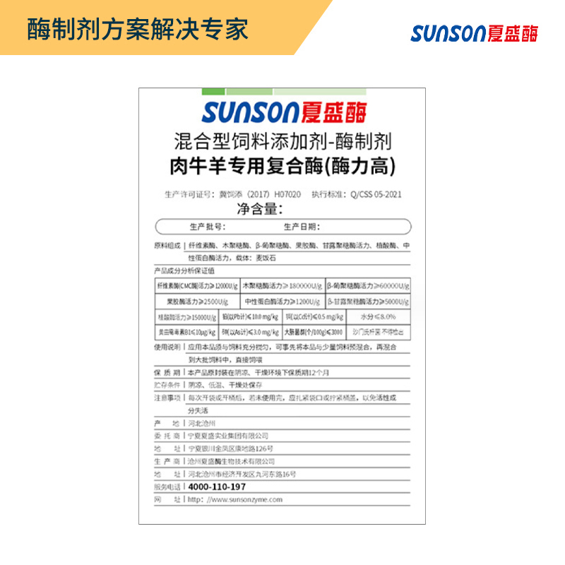 夏盛固体饲料肉牛羊专用复合酶(酶力高/浓缩型)SFG-0991