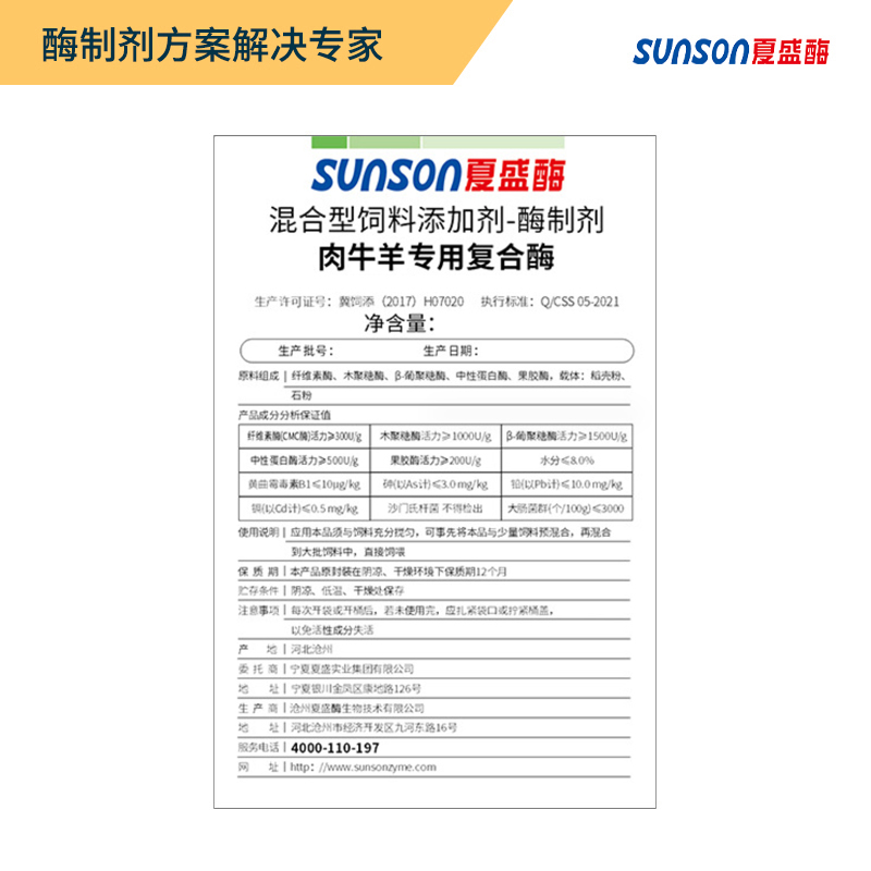 夏盛固体饲料肉牛羊专用复合酶SFG-0962