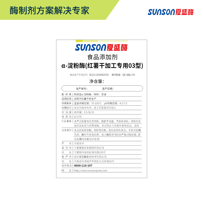 夏盛液体食品α-淀粉酶12万酶活(红薯干加工专用)FFY-4503