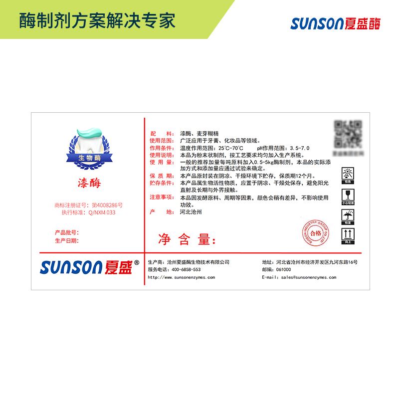 夏盛固体食品漆酶(改善口臭/美白牙齿/牙膏酶)FDG-5105
