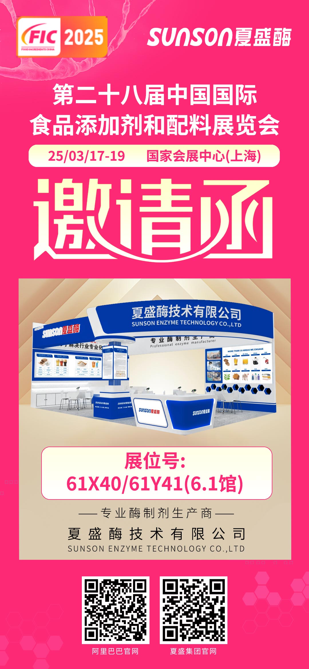2025年3月17日-19日,上海国家会展中心举办第二十八届中国国际食品添加剂和配料展览会,夏盛集团展位号:61X40/61Y41(6.1馆)。欢迎新老客户莅临。