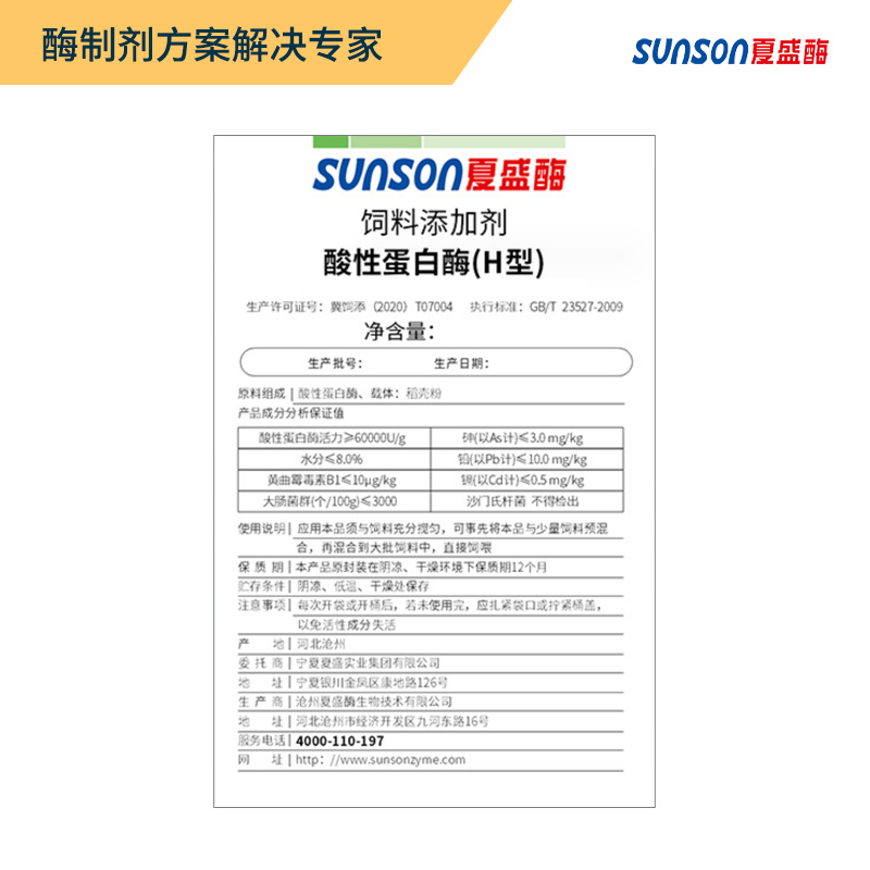 夏盛固体饲料酸性蛋白酶6万酶活(H型/水解蛋白质)SDG-2422