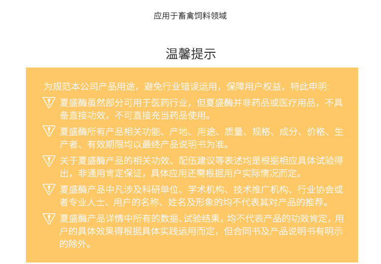 生物酶已广泛应用于众多领域,同时在一些新行业中有着巨大潜力。夏盛致力于生物酶的应用开发20余年,以下为此产品较成熟的应用领域;若有新行业的应用需求,我们也期待与诸位同仁相互探讨、合作研发。