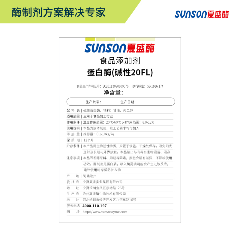 夏盛液体食品级碱性蛋白酶20万酶活(食品蛋白水解专用)FDY-2241