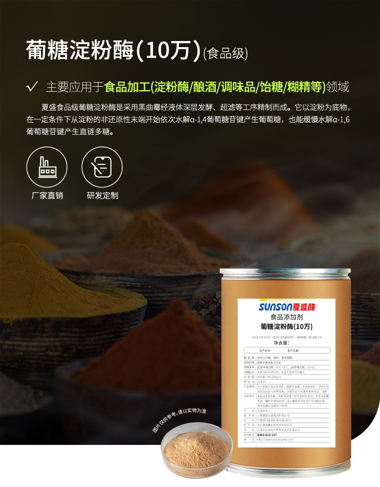 夏盛固体食品级葡糖淀粉酶10万酶活(食品加工/淀粉糖/酿酒/调味品可用)FDG-2228